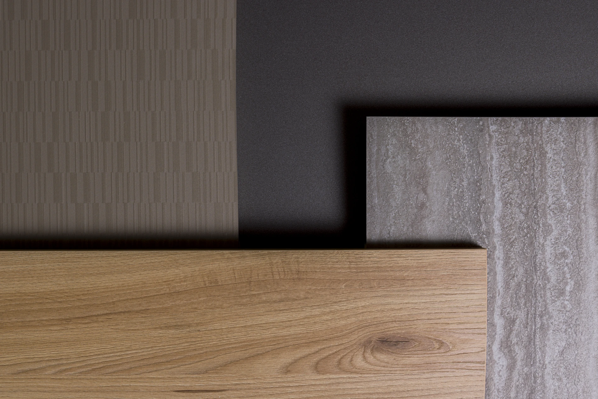 The collection comprises 85 decors, including woods, metals, stones, fabrics and solid colours, organised into 6 colour harmonies and available in 15 finishes.